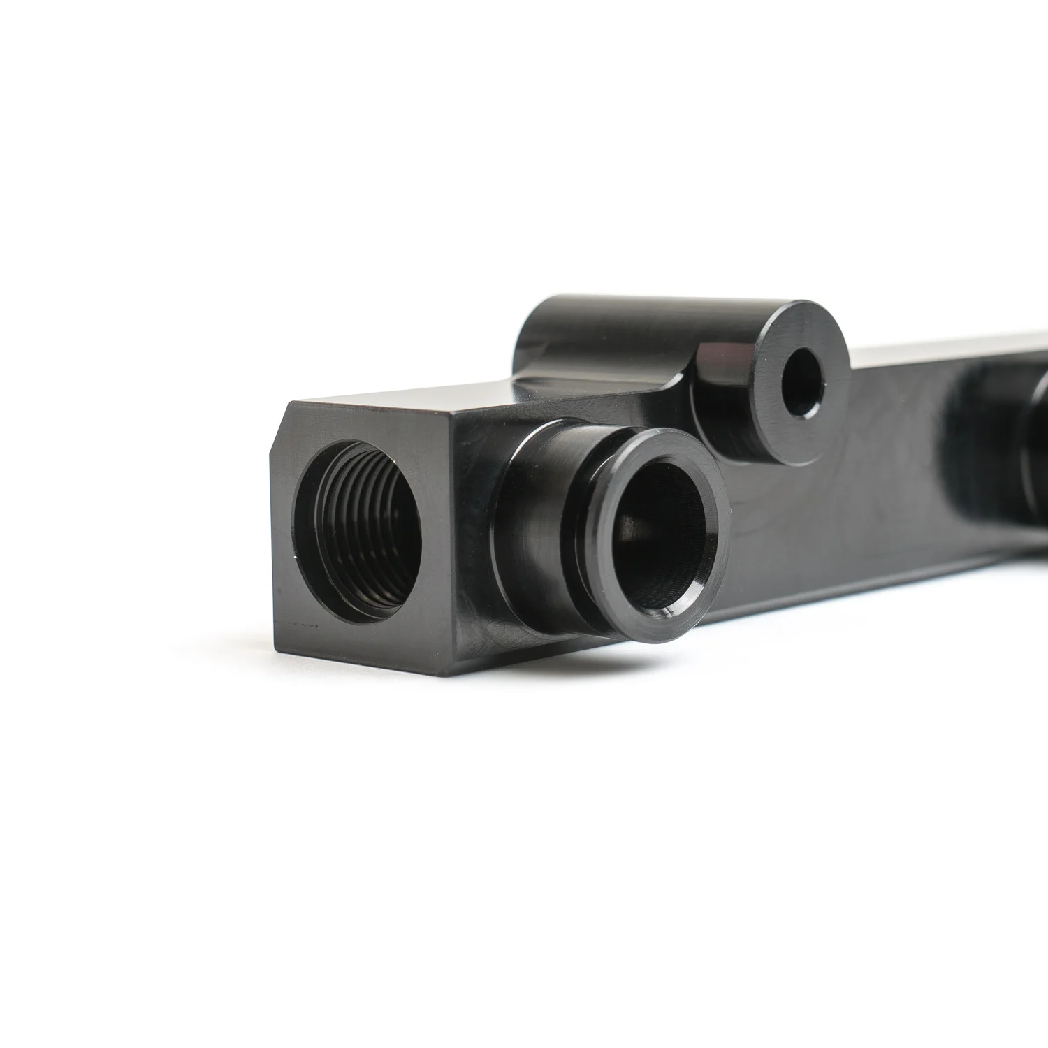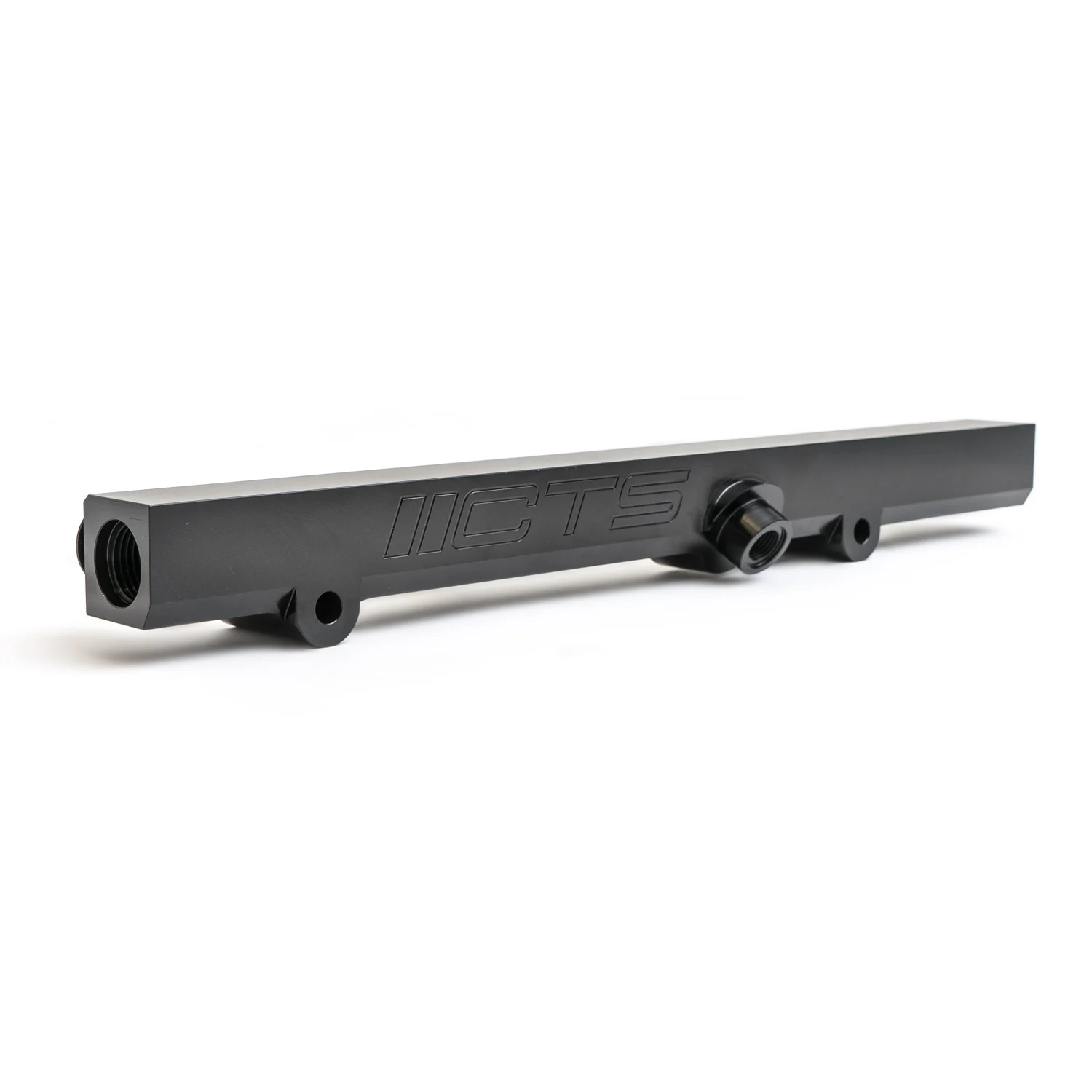 Proprietary billet aluminum high-flow fuel rail (hard anodized for E85 fuel)