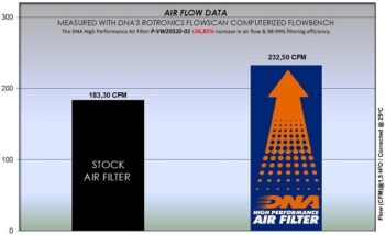 * Η ροή αέρος του φίλτρου ξεπερνάει κατά +26,85% το εργοστασιακό φίλτρο. Πιο αναλυτικά: